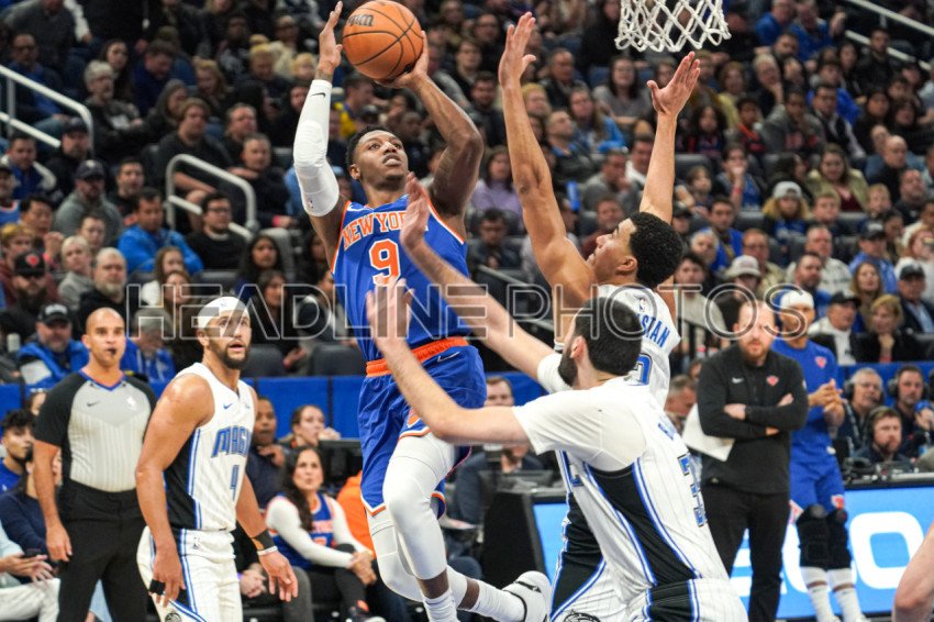 Orlando, Florida, USA, December 29, 2023, New York Knicks foward RJ Barrett #9 attempt to score in the first half at the Amway Center. (Photo Credit: Marty Jean-Louis)