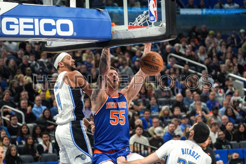 Orlando, Florida, USA, December 29, 2023, New York Knicks center Isaiah Hartenstein #55 makes a dunk in the first half at the Amway Center. (Photo Credit: Marty Jean-Louis)