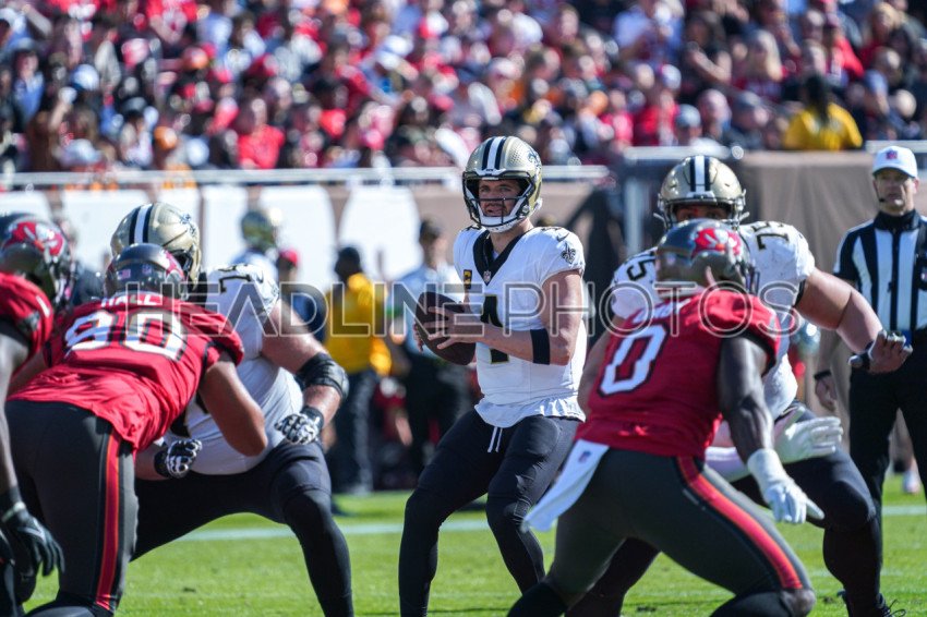 Tampa Bay, Florida, USA, December 31, 2023, New Orleans Saints quarterback Derek Carr #4 look to make a pass at Raymond James Stadium. (Photo Credit: Marty Jean-Louis)