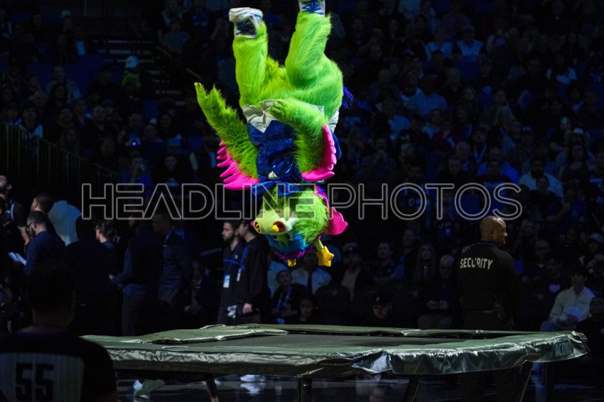 Orlando, Florida, USA, January 9, 2024, Orlando Magic mascot stuff the magic dragon during a time out at the Amway Center. (Photo Credit: Marty Jean-Louis)