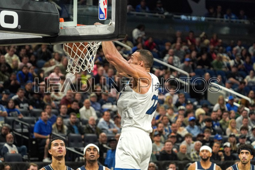 Orlando, Florida, USA, January 9, 2024, Minnesota Timberwolves center Rudy Gobert #27 makes a dunk at the Amway Center. (Photo Credit: Marty Jean-Louis)