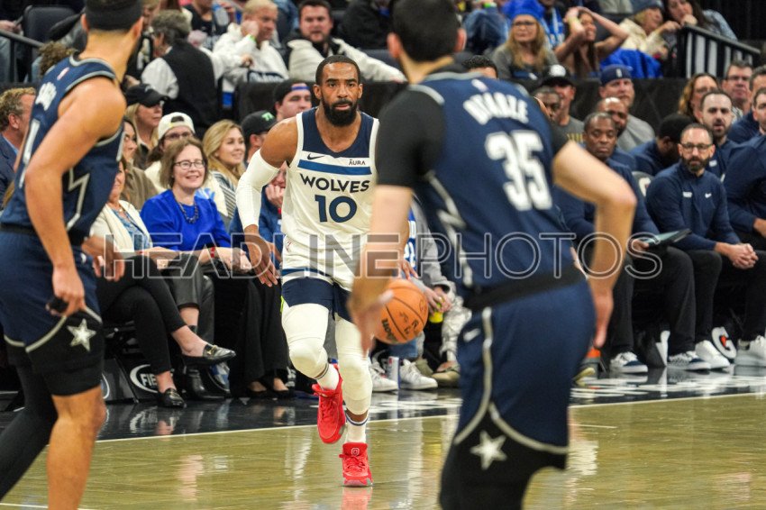 Orlando, Florida, USA, January 9, 2024, Minnesota Timberwolves guard Mike Conley #10 runs forward at the Amway Center. (Photo Credit: Marty Jean-Louis)