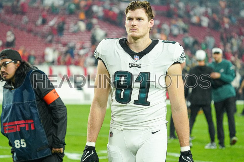 Tampa Bay, Florida, USA, January 15, 2024, Philadelphia Eagles player Grant Calcaterra #81 at Raymond James Stadium. (Photo Credit: Marty Jean-Louis)
