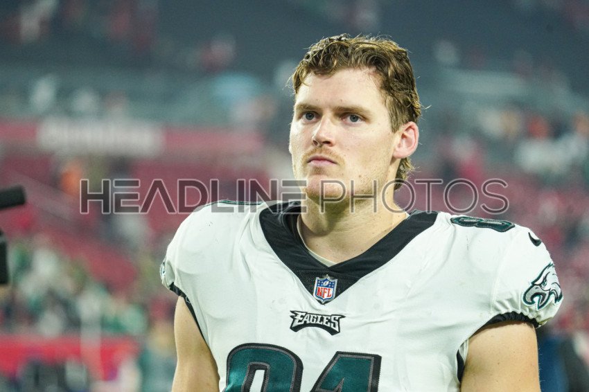 Tampa Bay, Florida, USA, January 15, 2024, Philadelphia Eagles player Grant Calcaterra #81 at Raymond James Stadium. (Photo Credit: Marty Jean-Louis)