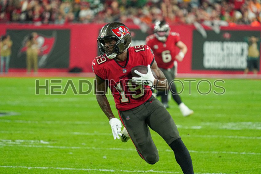 Tampa Bay, Florida, USA, January 15, 2024, Tampa Bay Buccaneers wide receiver David Moore #19 makes a run resulting in a touchdown at Raymond James Stadium. (Photo Credit: Marty Jean-Louis)