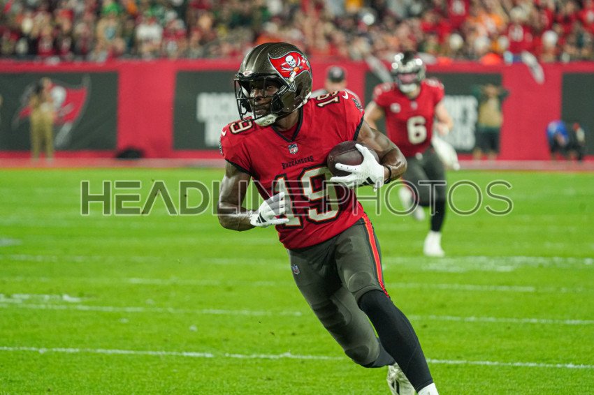 Tampa Bay, Florida, USA, January 15, 2024, Tampa Bay Buccaneers wide receiver David Moore #19 makes a run resulting in a touchdown at Raymond James Stadium. (Photo Credit: Marty Jean-Louis)