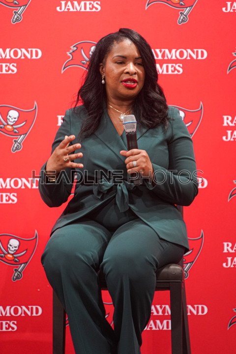 Tampa Bay, Florida, USA, January 15, 2024, Arndrea Waters King speak to the press during Martin Luther King's Day before the Tampa Bay Buccaneers and Philadelphia Eagles game at Raymond James Stadium. (Photo Credit: Marty Jean-Louis)