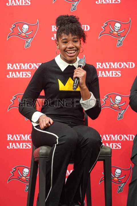 Tampa Bay, Florida, USA, January 15, 2024, Yolanda Renee King speak to the press during Martin Luther King's Day before the Tampa Bay Buccaneers and Philadelphia Eagles game at Raymond James Stadium. (Photo Credit: Marty Jean-Louis)
