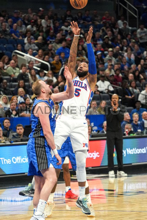 Orlando, Florida, USA, January 19, 2024, Philadelphia 76ers forward Marcus Morris Sr #5 takes a shot at the Amway Center. (Photo Credit: Marty Jean-Louis)