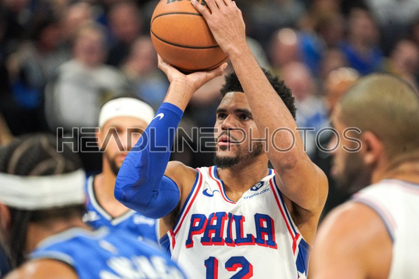 Orlando, Florida, USA, January 19, 2024, Philadelphia 76ers forward Tobias Harris #12 shoots a free throw in the first half at the Amway Center. (Photo Credit: Marty Jean-Louis)