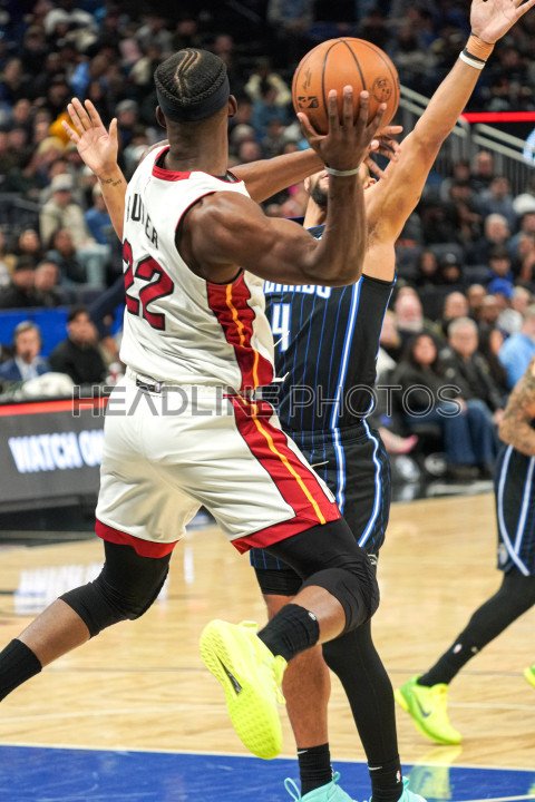 Orlando, Florida, USA, January 31, 2024, Miami Heat forward Jimmy Butler #22 jump to make a pass at the Kia Center. (Photo Credit: Marty Jean-Louis)