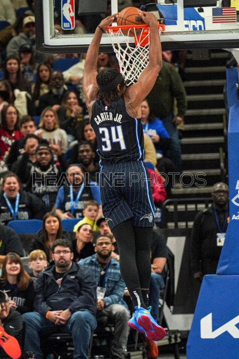 Orlando, Florida, USA, January 31, 2024, Orlando Magic center Wendell Carter Jr #34 makes a dunk at the Kia Center. (Photo Credit: Marty Jean-Louis)