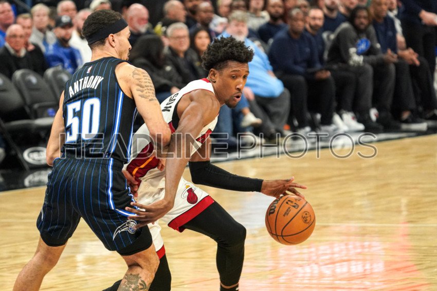 Orlando, Florida, USA, January 31, 2024, Miami Heat guard Josh Richardson #0 attempt to run pass Cole Anthony #50 at the Kia Center. (Photo Credit: Marty Jean-Louis)