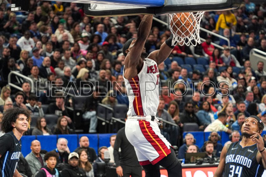 Orlando, Florida, USA, January 31, 2024, Miami Heat center Bam Adebayo #13 makes a dunk in the first at the Kia Center. (Photo Credit: Marty Jean-Louis)