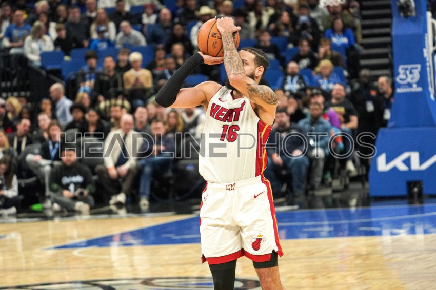 Orlando, Florida, USA, January 31, 2024, Miami Heat guard Caleb Martin shoots a three in the first half at the Kia Center. (Photo Credit: Marty Jean-Louis)