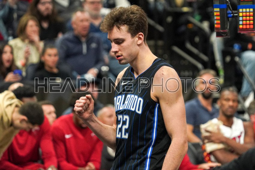 Orlando, Florida, USA, January 31, 2024, Orlando Magic player Franz Wagner #22 reacts after making a shot in the fourth quarter at the Kia Center. (Photo Credit: Marty Jean-Louis)