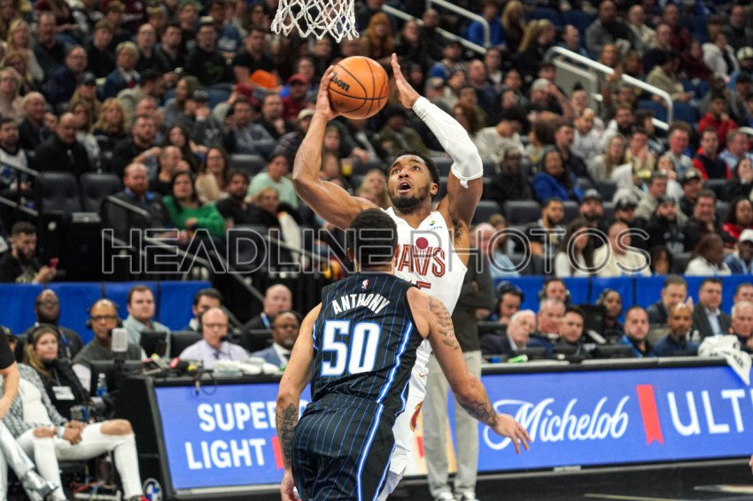 Orlando, Florida, USA, January 22, 2024, Cleveland Cavaliers guard Donovan Mitchell #45 attempt to score in the first half at the Kia Center. (Photo Credit: Marty Jean-Louis)