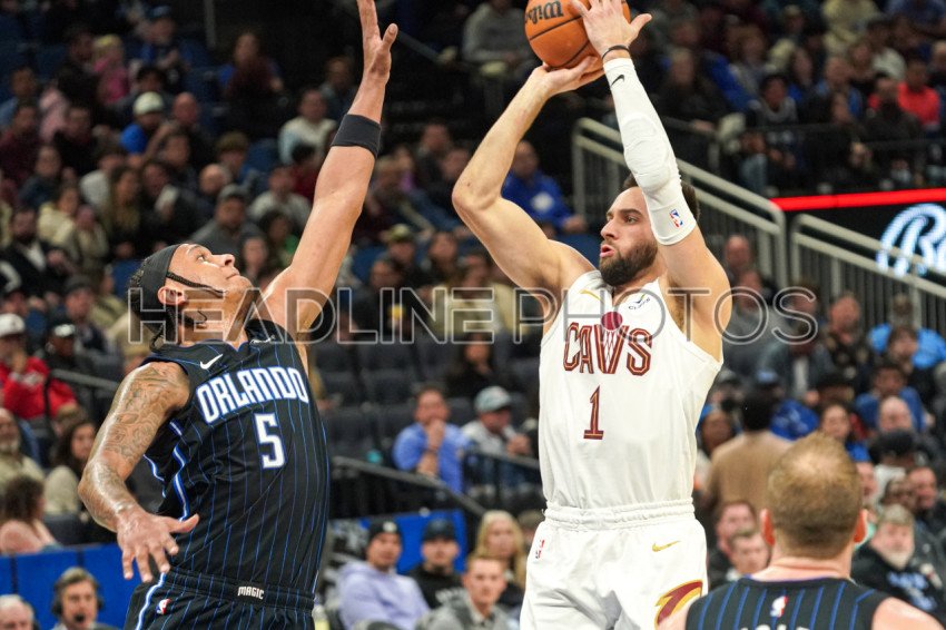 Orlando, Florida, USA, January 22, 2024, Cleveland Cavaliers guard Max Strus #1 shoots a three in the first at the Kia Center. (Photo Credit: Marty Jean-Louis)