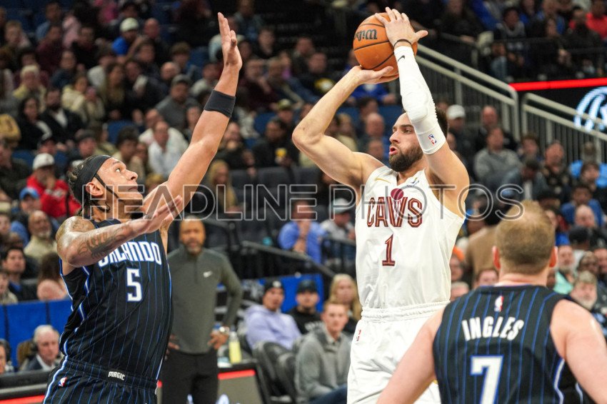 Orlando, Florida, USA, January 22, 2024, Cleveland Cavaliers guard Max Strus #1 shoots a three in the first at the Kia Center. (Photo Credit: Marty Jean-Louis)