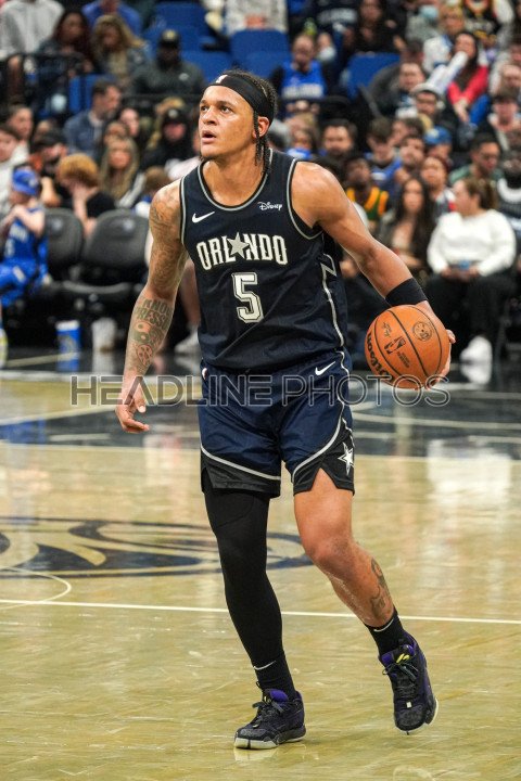 Orlando, Florida, USA, January 28, 2024, Orlando Magic forward Paolo Banchero #5 looks up to the basket at the Kia Center. (Photo Credit: Marty Jean-Louis)
