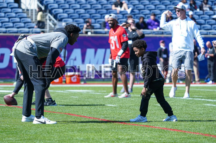 Orlando, Florida, USA, February 2, 2024, Child playing with the AFC players During AFC vs NFC NFL Pro Bowl Practice Session at Camping World Stadium. (Photo Credit: Marty Jean-Louis)