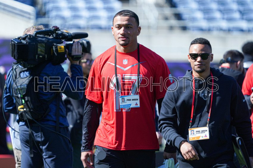 Orlando, Florida, USA, February 2, 2024, Envan Engram #17 of the Jacksonville Jaguars During AFC vs NFC NFL Pro Bowl Practice Session at Camping World Stadium. (Photo Credit: Marty Jean-Louis)