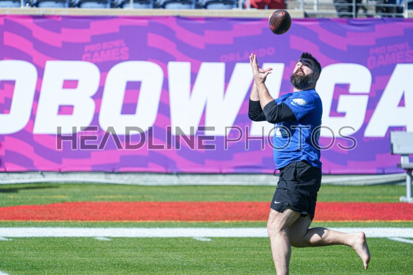 Orlando, Florida, USA, February 2, 2024, Jason Kelce #62 of the Philadelphia Eagles During AFC vs NFC NFL Pro Bowl Practice Session at Camping World Stadium. (Photo Credit: Marty Jean-Louis)