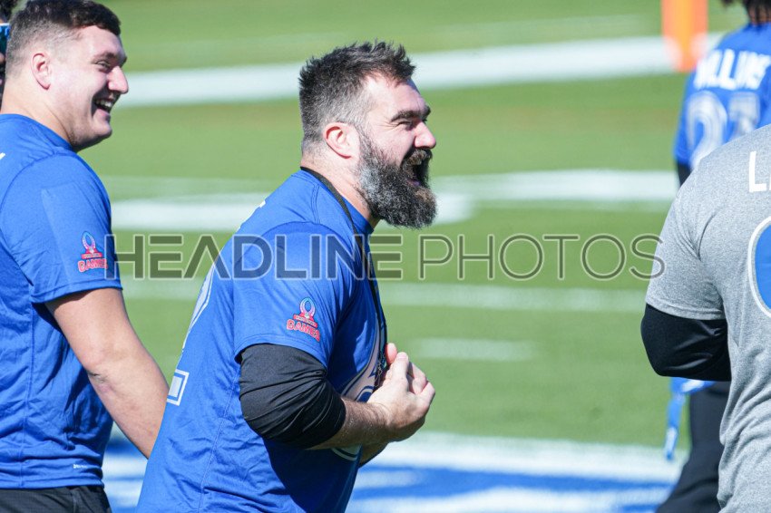 Orlando, Florida, USA, February 2, 2024, Jason Kelce #62 of the Philadelphia Eagles During AFC vs NFC NFL Pro Bowl Practice Session at Camping World Stadium. (Photo Credit: Marty Jean-Louis)
