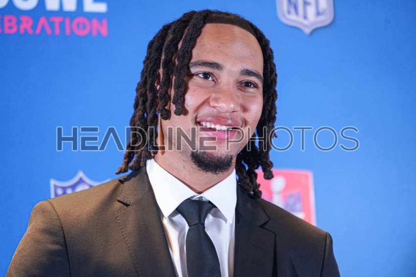 Las Vegas, Nevada, USA, February 7, Houston Texans Quarterback CJ Stroud posing for pictures after receiving an award during the 25th Annual Super Bowl Soulfoul Celebration at the Palms Resort in Las Vegas, Nevada. (Photo Credit: Marty Jean-Louis)