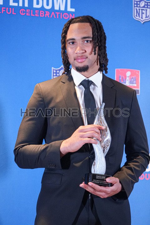 Las Vegas, Nevada, USA, February 7, Houston Texans Quarterback CJ Stroud posing for pictures after receiving an award during the 25th Annual Super Bowl Soulfoul Celebration at the Palms Resort in Las Vegas, Nevada. (Photo Credit: Marty Jean-Louis)
