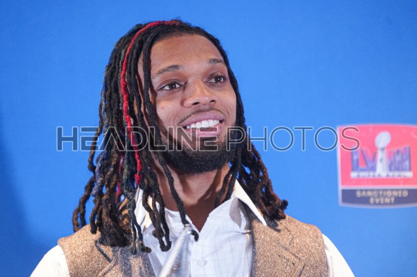 Las Vegas, Nevada, USA, February 7, Bufallo Bills Safety Damar Hamlin back stage after receiving an award during the 25th Annual Super Bowl Soulfoul Celebration at the Palms Resort in Las Vegas, Nevada. (Photo Credit: Marty Jean-Louis)