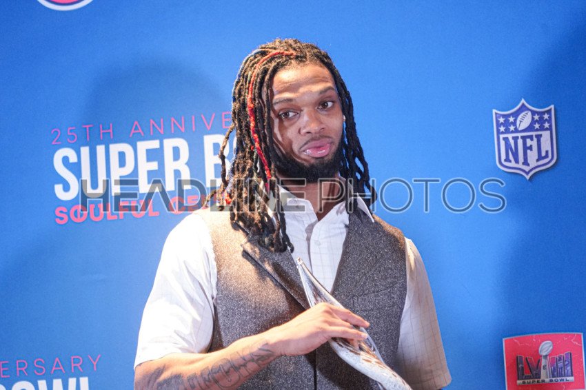 Las Vegas, Nevada, USA, February 7, Bufallo Bills Safety Damar Hamlin back stage after receiving an award during the 25th Annual Super Bowl Soulfoul Celebration at the Palms Resort in Las Vegas, Nevada. (Photo Credit: Marty Jean-Louis)