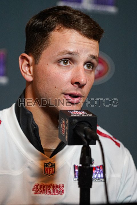 Henderson, Nevada, USA, February 8, 2024, 49ers quarterback Brock Purdy during the Pre Super Bowl Press Conference (Photo Credit: Marty Jean-Louis)