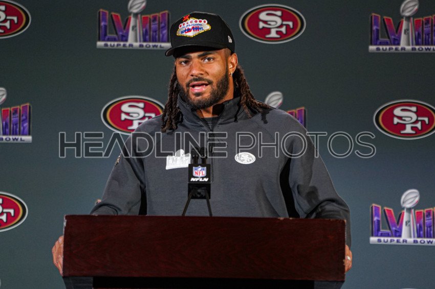 Henderson, Nevada, USA, February 8, 2024, 49ers Linebacker Fred Warner during the Pre Super Bowl Press Conference (Photo Credit: Marty Jean-Louis)