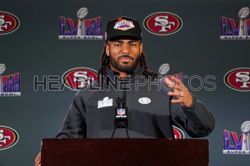 Henderson, Nevada, USA, February 8, 2024, 49ers Linebacker Fred Warner during the Pre Super Bowl Press Conference (Photo Credit: Marty Jean-Louis)