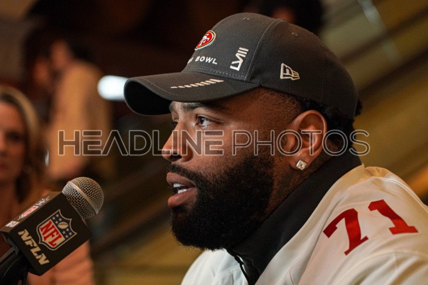 Henderson, Nevada, USA, February 8, 2024, 49ers tackle Trent Williams during the Pre Super Bowl Press Conference (Photo Credit: Marty Jean-Louis)