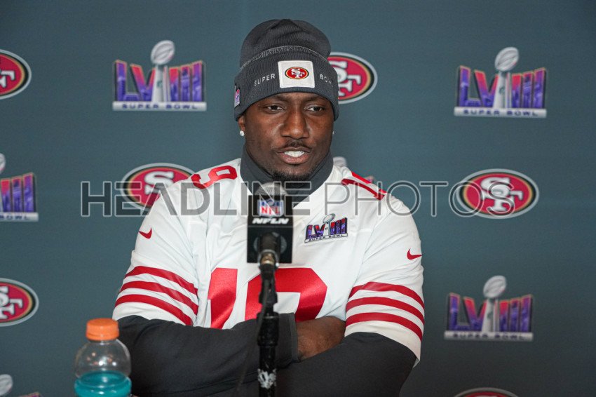 Henderson, Nevada, USA, February 8, 2024, 49ers Wide Receiver Deebo Samuel during the Pre Super Bowl Press Conference (Photo Credit: Marty Jean-Louis)