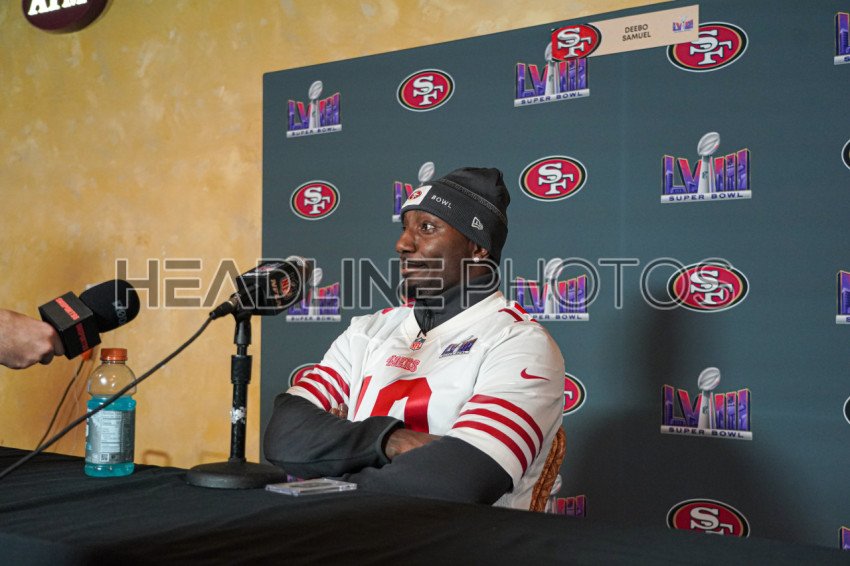 Henderson, Nevada, USA, February 8, 2024, 49ers Wide Receiver Deebo Samuel during the Pre Super Bowl Press Conference (Photo Credit: Marty Jean-Louis)