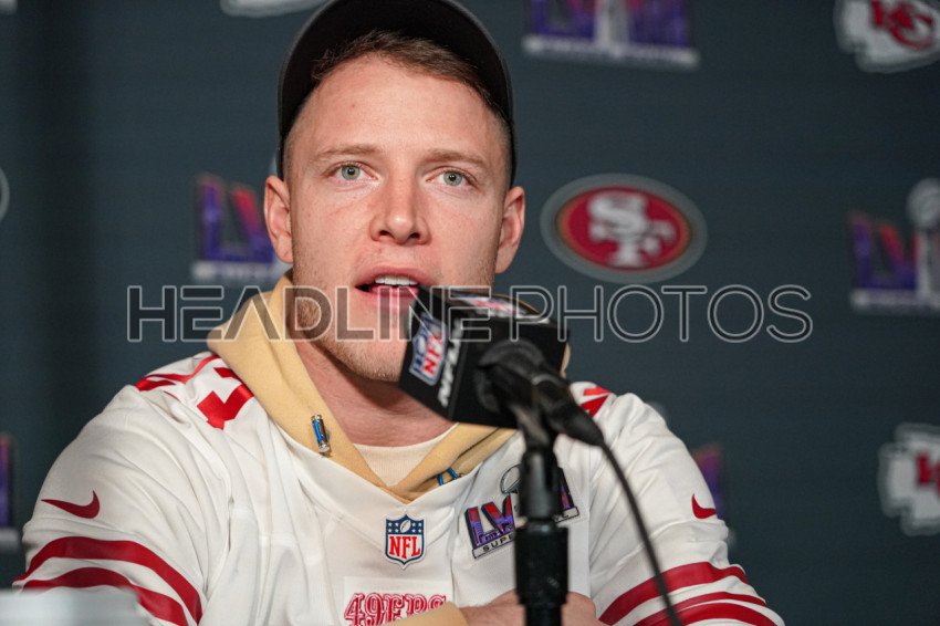 Henderson, Nevada, USA, February 8, 2024, 49ers Running back Christian McCaffrey during the Pre Super Bowl Press Conference (Photo Credit: Marty Jean-Louis)