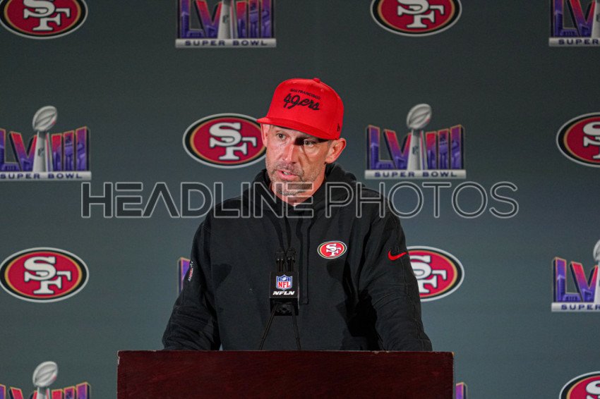 Henderson, Nevada, USA, February 8, 2024, 49ers head coach Kyle Shanahan during the Pre Super Bowl Press Conference (Photo Credit: Marty Jean-Louis)