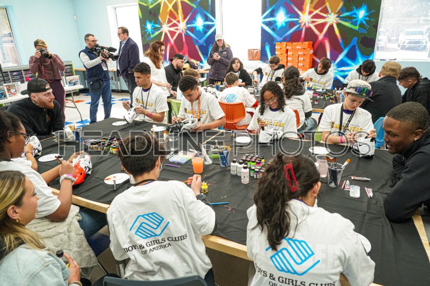 Henderson, Nevada, USA, February 9, 2024, MAXX CROSBY painting some cleats with the kids during the Walter Payton NFL Man of the Year Event At the Donald W. Reynolds Boys & Girls Club (Photo Credit: Marty Jean-Louis)