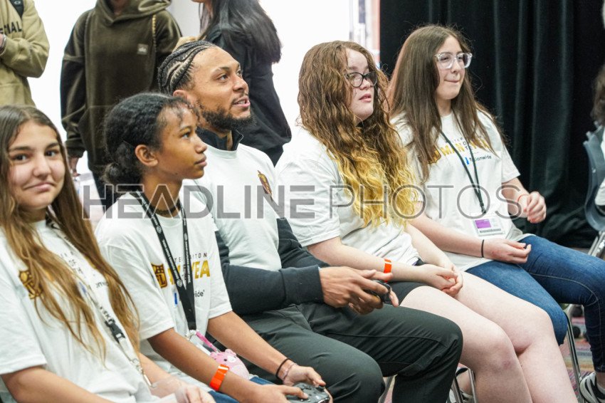 Henderson, Nevada, USA, February 9, 2024, ANTOINE WINFIELD JR. of the Buccneers playing Madden with some of the kids during the Walter Payton NFL Man of the Year Event At the Donald W. Reynolds Boys & Girls Club (Photo Credit: Marty Jean-Louis)