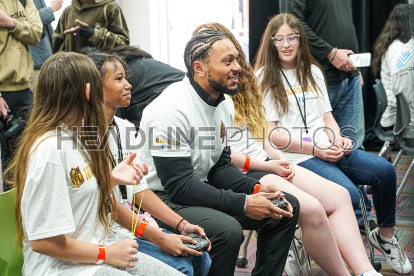 Henderson, Nevada, USA, February 9, 2024, ANTOINE WINFIELD JR. of the Buccneers playing Madden with some of the kids during the Walter Payton NFL Man of the Year Event At the Donald W. Reynolds Boys & Girls Club (Photo Credit: Marty Jean-Louis)