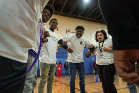 Henderson, Nevada, USA, February 9, 2024, JONATHAN JONES of the Patriots doing some team building exercises during the Walter Payton NFL Man of the Year Event At the Donald W. Reynolds Boys & Girls Club (Photo Credit: Marty Jean-Louis)