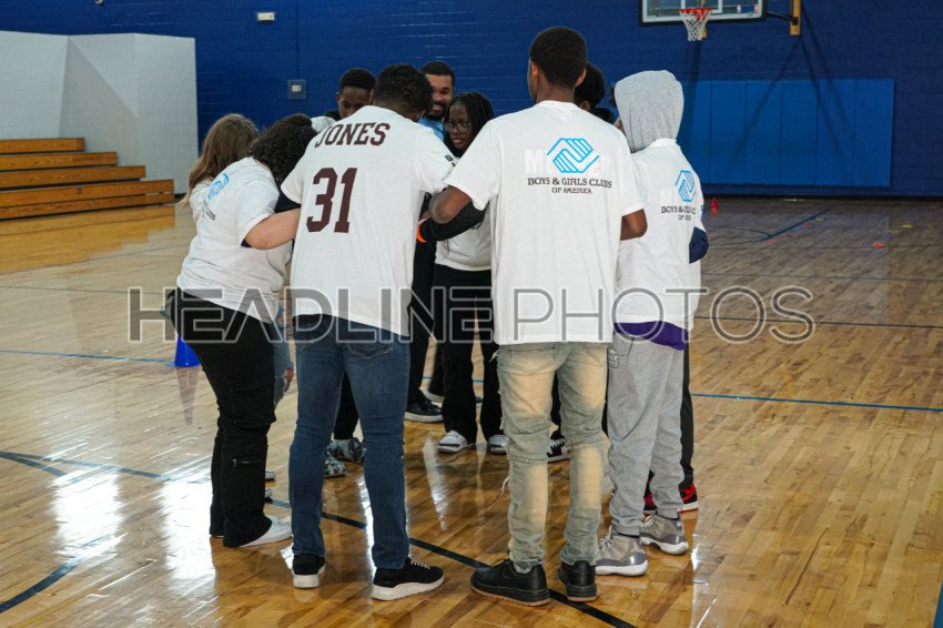 Henderson, Nevada, USA, February 9, 2024, JONATHAN JONES of the Patriots doing some team building exercises during the Walter Payton NFL Man of the Year Event At the Donald W. Reynolds Boys & Girls Club (Photo Credit: Marty Jean-Louis)