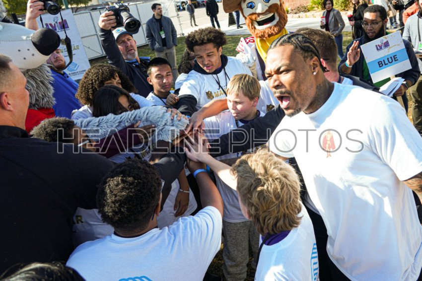Henderson, Nevada, USA, February 9, 2024, DERWIN JAMES JR. #3 having some fun with some of the kids during the Walter Payton NFL Man of the Year Event At the Donald W. Reynolds Boys & Girls Club (Photo Credit: Marty Jean-Louis)