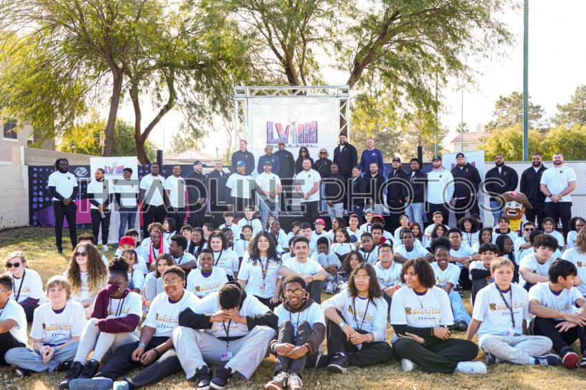 Henderson, Nevada, USA, February 9, 2024, Walter Payton NFL Man of the Year honorees & the Boys & Girls Club kids take Photo At the Donald W. Reynolds Boys & Girls Club (Photo Credit: Marty Jean-Louis)