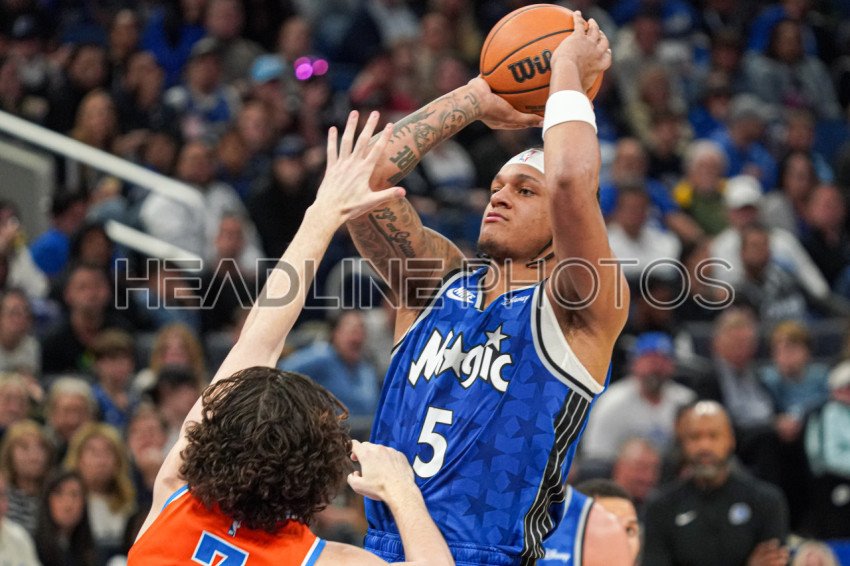Orlando, Florida, USA, February 13, 2024, Orlando Magic forward Paolo Banchero #5 attempt to score in the first half at the Kia Center. (Photo Credit: Marty Jean-Louis)