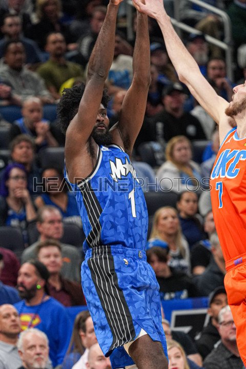 Orlando, Florida, USA, February 13, 2024, Orlando Magic forward Jonathan Isaac #1 shoots a three in the first half at the Kia Center. (Photo Credit: Marty Jean-Louis)