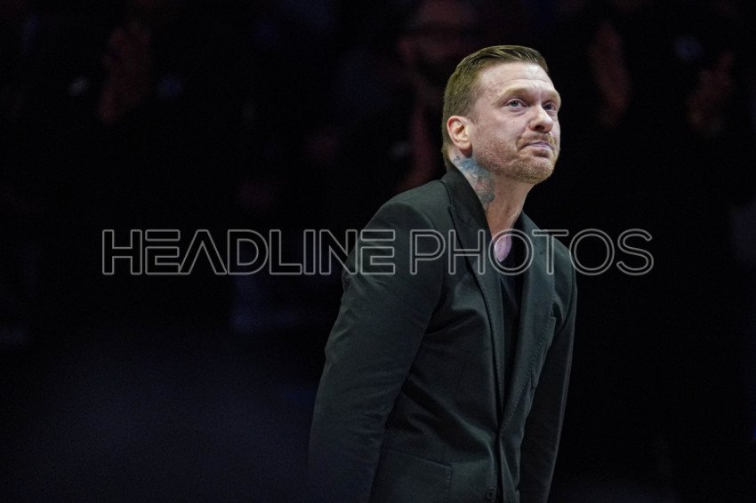 Orlando, Florida, USA, February 13, 2024, Brent Smith sings the National anthem before the Oklahoma Thunder vs the Orlando Magic game at the Kia Center. (Photo Credit: Marty Jean-Louis)